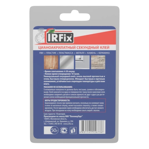 Высококачественный быстродействующий цианоакрилатный однокомпонентный клей IRFix CA 550 моментального схватывания для точного и прочного соединения мелких деталей.