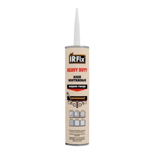 Монтажный клей IRFix HEAVY DUTY на основе синтетического каучука с высокой начальной прочностью и высокой силой схватывания.