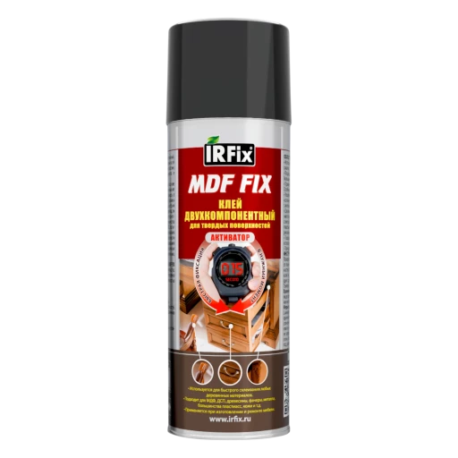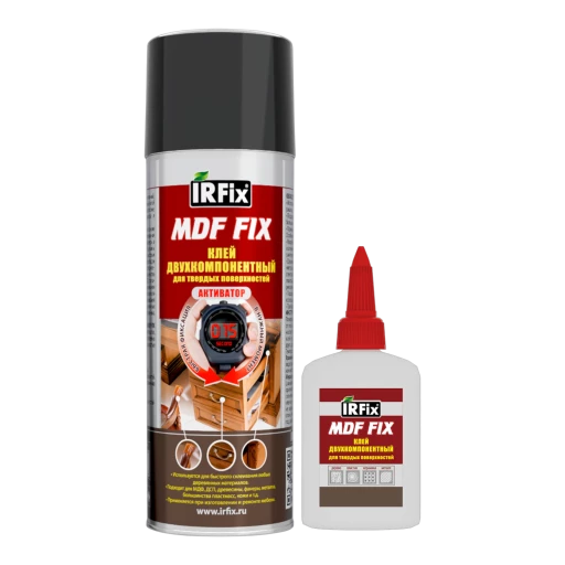 Высококачественный профессиональный высокопрочный состав IRFix MDF Fix, состоящий из быстродействующего клея и активатора. В сочетании оба компонента обеспечивают мгновенное схватывание и создание сверхпрочного, жёсткого и износостойкого шва, идеально подходящего для твёрдых, гладких и плохо впитывающих материалов.