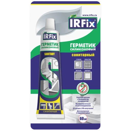Высококачественный однокомпонентный силиконовый санитарный герметик IRFix SANITARY, отверждающийся за счет влаги воздуха. Предназначен для герметизации швов и стыков в помещениях с повышенной влажностью – ванных комнатах, кухнях, душевых и санузлах. Содержит противогрибковые добавки (фунгициды), предотвращающие образование плесени и грибка. Образует эластичный, влагостойкий и долговечный шов, устойчивый к моющим средствам, ультрафиолету и перепадам температуры. Отлично сцепляется со стеклом, керамикой, эмалью, фарфором, алюминием и пластиком.