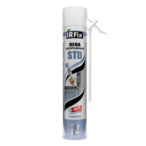 Высококачественная однокомпонентная полиуретановая монтажная пена зимнего применения IRFix STD зима в аэрозольной упаковке 750мл с трубкой-адаптером. Использование монтажного пистолета не требуется.