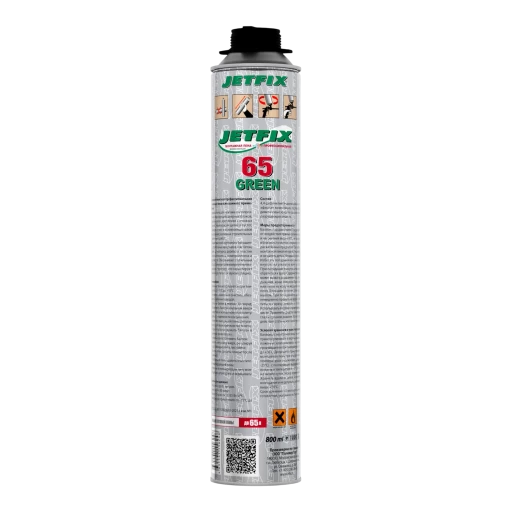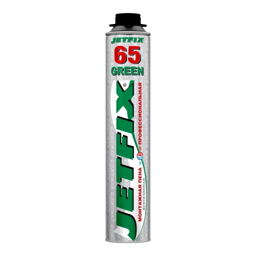 Высококачественная однокомпонентная полиуретановая монтажная пена всесезонного применения JETFIX 65 GREEN в аэрозольной упаковке 800мл. Используется с применением специального монтажного пистолета.