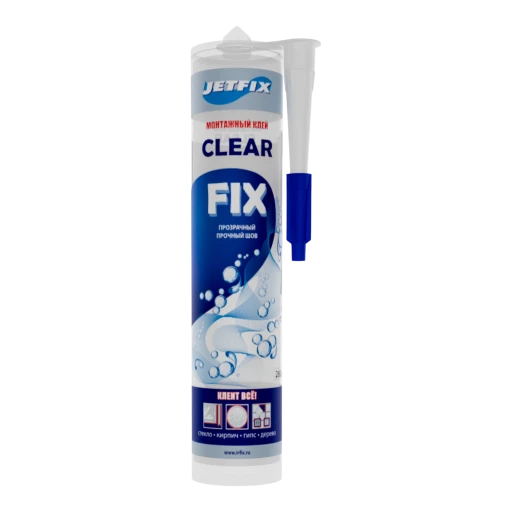 Высококачественный однокомпонентный клей-герметик JETFIX CLEAR FIX на гибридной основе, совмещаемый свойства прочного клея и силиконового герметика. Обеспечивает прозрачное и практически невидимое соединение, идеально подходящее для декоративных, монтажных и отделочных работ.