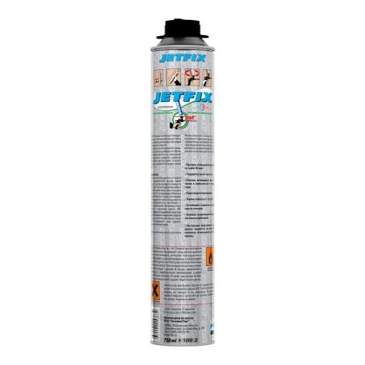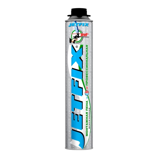 Высококачественная однокомпонентная полиуретановая монтажная пена всесезонного применения JETFIX PRO в аэрозольной упаковке 750мл. Используется с применением специального монтажного пистолета.