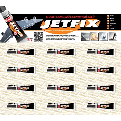 Высококачественный быстродействующий цианоакрилатный однокомпонентный клей JETFIX СУПЕР-КЛЕЙ моментального схватывания для точного и прочного соединения мелких деталей.