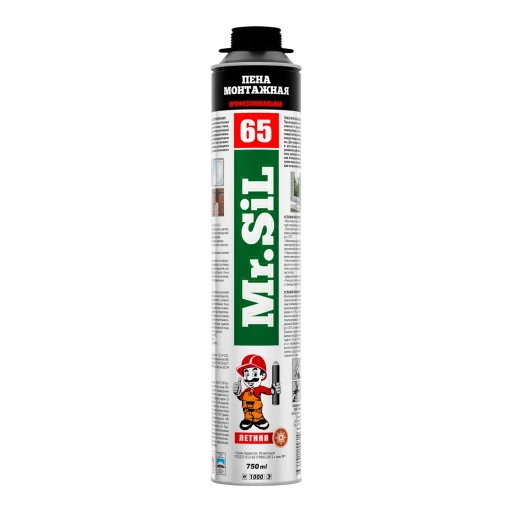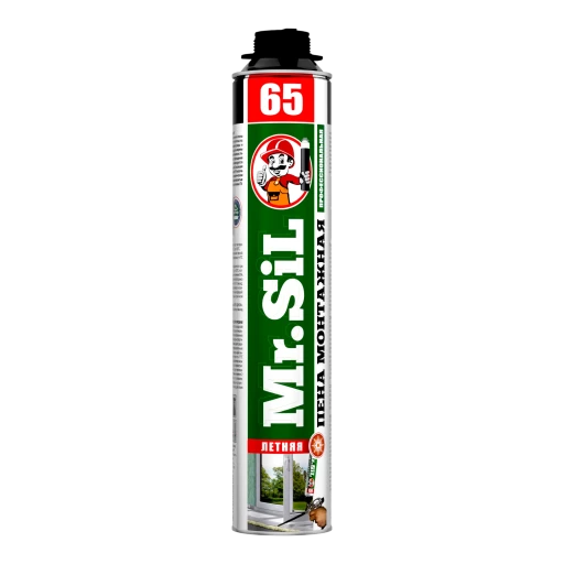 Высококачественная однокомпонентная полиуретановая монтажная пена летнего применения Mr.Sil 65 лето в аэрозольной упаковке 750мл. Используется с применением специального монтажного пистолета.