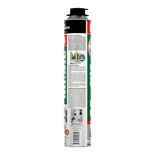 Максимальный выход пены образуется при температуре баллона от +15°С до +25°С и относительной влажности воздуха не менее 50%;