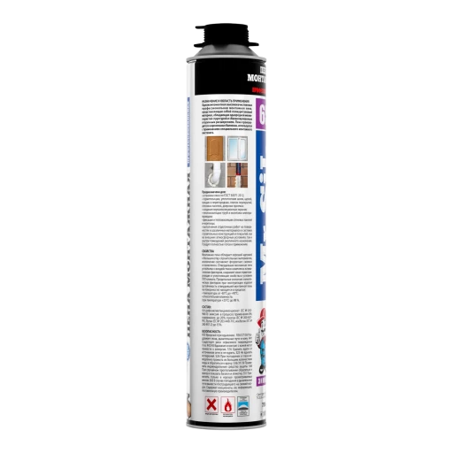 Высококачественная однокомпонентная полиуретановая монтажная пена зимнего применения Mr.Sil 65 зима в аэрозольной упаковке 750мл. Используется с применением специального монтажного пистолета.