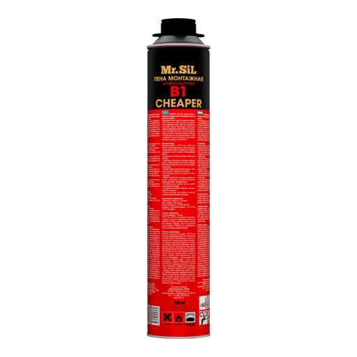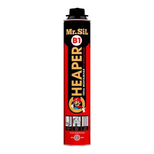 Однокомпонентная высококачественная огнестойкая монтажная пена Mr.Sil CHEARPER B1. Идеальное решение для конструкций с повышенными требованиями к огнестойкости. Обладает однородной мелкопористой структурой и огнестойкость до 240 минут.