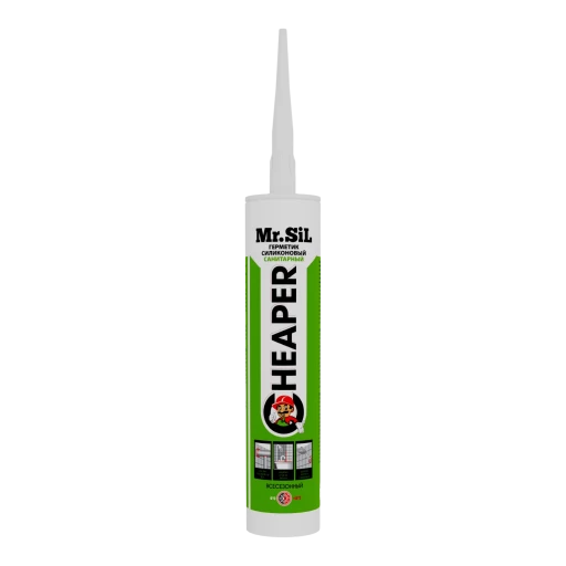 Высококачественный однокомпонентный силиконовый санитарный герметик Mr.Sil CHEAPER, отверждающийся за счет влаги воздуха. Предназначен для герметизации швов и стыков в помещениях с повышенной влажностью – ванных комнатах, кухнях, душевых и санузлах. Содержит противогрибковые добавки (фунгициды), предотвращающие образование плесени и грибка. Образует эластичный, влагостойкий и долговечный шов, устойчивый к моющим средствам, ультрафиолету и перепадам температуры. Отлично сцепляется со стеклом, керамикой, эмалью, фарфором, алюминием и пластиком.
