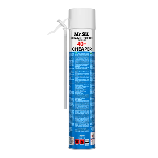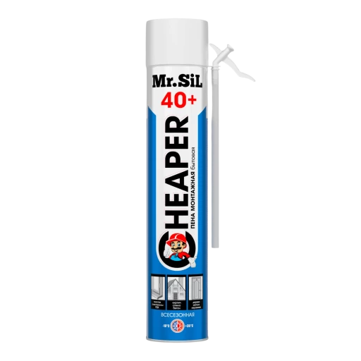 Высококачественная бытовая однокомпонентная полиуретановая всесезонная монтажная пена Mr.Sil CHEAPER 40+ c трубкой-адаптером.